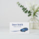 Photo of a blue compact car on a modern looking background with a stylish brush stroke behind the car. Use the front of the business card for all your information or just the company name and salesman's name. Use the back for the rest of your contact inforamtion. Great business card for new and used car sales people, car detailers and automotive service centres.