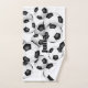 This fun soccer themed hand towel can be personalised with the athlete's name atop the image of a bunch of varied size black and white soccer balls - by katz_d_zynes