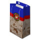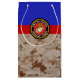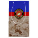 Use these Marine Corps gift bags for Marine Corps graduation from boot camp at either MCRD San Diego or Paris Island. Perfect as gift bags at a going away deployment party or even to hold a USMC veteran gift. Don't forget about a Marine Corps retirement party or even gifts for Marine Moms. Throw a Marine Mum shirt in there, or a Marine Mum Christmas ornament and it would make any Marine Mother cry. Don't forget about Marine Corps Dads, or grandparents either. Think about giving a token of appreciation to a United States Marine Corps recruiter at Christmas. The design contains a background of desert digital camouflage with the US Marine Corps Seal.