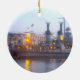 A circle ornament featuring a photo of the USS KIDD docked in Baton Rouge, La.