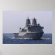 The amphibious transport dock ship USS Mesa Verde (LPD 19) transits the Mediterranean Sea during a visit, board, search and seizure exercise aboard the amphibious dock landing ship USS Whidbey Island. The USS Mesa Verde and USS Whidbey Island are deployed as part of the Bataan Amphibious Ready Group supporting maritime security operations and theatre security cooperation efforts in the U.S. 6th Fleet area of responsibility (Photograph by Mass Communication Specialist 1st Class Martin Cuaron).