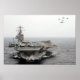 French F-2 Rafale M, E-2C Hawkeye and American F/A-18 Super Hornet aircraft perform a fly-by over the aircraft carrier USS Theodore Roosevelt (CVN 71) during integrated French and American carrier qualifications and cyclic flight operations. The Theodore Roosevelt Carrier Strike Group is participating in Joint Task Force Exercise "Operation Brimstone" off the Atlantic coast (Photograph by Mass Communication Specialist 3rd Class Jonathan Snyder).