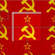 Yellow hammer and sickle on red flag. Historic flag of the Soviet Union.