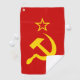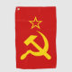 Yellow hammer and sickle on red flag. Historic flag of the Soviet Union.