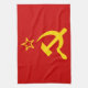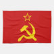 Yellow hammer and sickle on red flag. Historic flag of the Soviet Union.