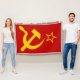 Yellow hammer and sickle on red flag. Historic flag of the Soviet Union.