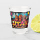 Shotglass from the state Utah, USA featuring an a big UTAH script in yellow pink, in front of the abstract Monument Valley and Wasatch mountains.