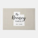 Modern farmhouse personalised doormat with your family name inside your state map. Faux burlap canvas texture background. Click Customise It to add your own text and images and create a unique one of a kind design!
