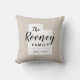 Modern farmhouse throw pillow personalised with your family name inside your state map. Faux burlap canvas texture background (please note pillow covers are not made of burlap material). Click the Customise It button to add your own text and select from all of our pillow styles to create your own unique one of a kind design!