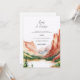 Utah Wedding Invitation Watercolor vintage old style. illustration painting of the red rocks in Zion National Park.