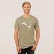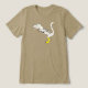 This bold design features the formidable Utahraptor ostrommaysorum poised for action. With a sleek white body, sharp black feather tips, and vivid yellow legs, this raptor stands out against a light army green shirt- blending natural camouflage tones with dramatic contrast.