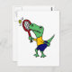 UV- Funny T-Rex Dinosaur Playing Tennis Cartoon Postcard