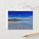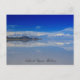 Postcard of the amazing Uyuni salt plains in Bolivia with skyline & mountain reflected in the water covered plains.