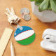 The flag of Uzbekistan has been deftly fitted to the circular fob of this keychain. A handy reminder of Uzbekistani heritage.