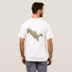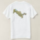 The front of this t-shirt bears a small Uzbekistani flag with its familiar white crescent and stars on a light blue bands with a white and green band below, while the back displays a relief map of Uzbekistan. Available on t-shirts, sweatshirts, polos, long-sleeves and more.
