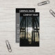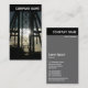 A vertical business card template with a black header with an image on the front. Company name in the header on the front and back with All other contact details on the back. The photo or image on the front can also be changed. The design also allows plenty of scope for additional customisation.