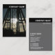 A vertical business card template with a black header with an image on the front. Company name in the header on the front and back with All other contact details on the back. The photo or image on the front can also be changed. The design also allows plenty of scope for additional customisation.