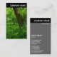 A vertical business card template with a black header with an image on the front. Company name in the header on the front and back with All other contact details on the back. The photo or image on the front can also be changed. The design also allows plenty of scope for additional customisation.