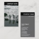 A vertical business card template with a black header with an image on the front. Company name in the header on the front and back with All other contact details on the back. The photo or image on the front can also be changed. The design also allows plenty of scope for additional customisation.
