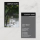 A vertical business card template with a black header with an image on the front. Company name in the header on the front and back with All other contact details on the back. The photo or image on the front can also be changed. The design also allows plenty of scope for additional customisation.