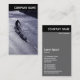 A vertical business card template with a black header with an image on the front. Company name in the header on the front and back with All other contact details on the back. The photo or image on the front can also be changed. The design also allows plenty of scope for additional customisation.
