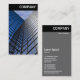 A vertical business card template with a black header with an image on the front. Company name in the header on the front and back with All other contact details on the back. The photo or image on the front can also be changed. The design also allows plenty of scope for additional customisation.