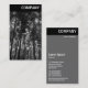 A vertical business card template with a black header with an image on the front. Company name in the header on the front and back with All other contact details on the back. The photo or image on the front can also be changed. The design also allows plenty of scope for additional customisation.
