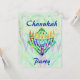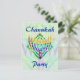 Colourful painted menorah with abstract green patterned background. Chanukah design. Custom invitations - just add your own information in the provided spaces.