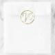 V Monogram Faux Gold Envelope Or Favour Seal. These classic round stickers are printed with non metallic ink on a flat sticker to look like gold. They are not beveled or embossed monograms but are designed to look like they are beveled or embossed monograms. These gold monogram seals are printed on a white background unless you select a different colour background before you proceed to checkout. In addition to being pretty wedding stationery supplies, these elegant wedding invitation envelope seals also make great monogrammed custom Christmas card seals, personalised holiday greeting card envelope seal stickers and customised Xmas card monogram seal stickers.