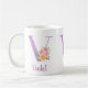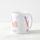 V Monogram Purple Floral Watercolor Personalised Coffee Mug
