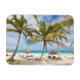 Tropical beach vacation destination with hammocks, beach chairs, and palm trees in Tulum, Mexico.