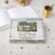 A photo of your vacation rental property is highlighted on this useful guest book notebook. Welcome guests to your vacation rental property home, apartment, lake house, beach house, bed and breakfast b&b and encourage them to sign the guest book and leave a special note. Custom printed vacation rental guestbook can be used for guest notes or customised for use as any title you choose. Modern luxury beach resort island hotel theme with white vintage weathered beach wood plank background pattern design has the charm and character of sophistication.