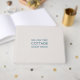 A minimalist simple vacation rental guestbook featuring modern typography in navy blue on a stone background. The perfect versatile design for guests to your villa, cottage, hotel, bed and breakfast or holiday home!