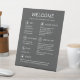 Vacation Rental Modern Grey Guest Information Pedestal Sign. A stylish and practical addition to any vacation rental. This modern sign not only greets guests with a warm welcome but also provides essential information for a seamless stay. From Wi-Fi details to house rules, it's all neatly presented in a minimalist design that perfectly complements your house. Guests will appreciate the attention to detail, ensuring they feel right at home from the moment they arrive. Make a lasting impression with our Welcome Sign!
