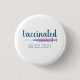 Vaccinated in blue script font with an illustrated need in shades of purple and blue. Personalise with a date in blue sans font.
