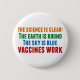 Hillary Clinton quote on vaccination: the science is clear: the earth is round, the sky is blue, vaccines work. Colourful button to bring awareness to the measles outbreaks and the Covid pandemic. Please vaccinate your children to prevent the spread of diseases and illness.