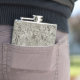 Well made flask, a little better than I had expected. Flask came in clear plastic box which gave it a nice presentation when I took it out of the zazzle packaging. Image is not printed on flask but on sticker. Don't know how this will hold up I haven't used it yet. This would make a Great gift! I plan to purchase more for friends! Cheers. I thought a little brighter than computer. Very crisp, writing wasn't