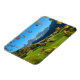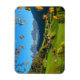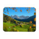 Rectangular photo magnet with the village of St. Magdalena or Santa Maddalena with the characteristic church in front of the Geisler or Odle Dolomites mountain peaks in the Val di Funes valley (Villnoesstal) in Italy in autumn surrounded by autumn leaves.