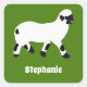 Create personalised sticker to decorate your stuff, party supplies and more. These square shaped sticker feature an illustration of a Valais Blacknose sheep in black and white against a green background with your name below in bold white lettering.
