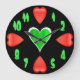 This wall clock is designed with big red hearts on each of the four hours (12, 3, 6, 9), with an Irish green heart in its center. Makes a great gift idea for Valentine's Day and also St. Patrick's Day!
