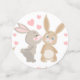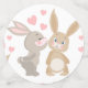 Cute rabbits kissing each other. The background is white with pink hearts pattern