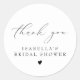 This bridal shower thank you sticker features an elegant calligraphy script font and classic minimalist design. Easily edit the sans serif wording to meet the needs of your event. All colours are editable in the full editor.