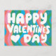 Valentine Bubble Letters Pink Curvy Retro Stripes Postcard