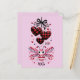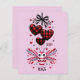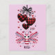 Plaid-patterned hearts hang from a bow, surrounded by small red hearts and the words "XOXO" and "HUGS." A cute, cartoonish flying insect with large eyes and vibrant wings sits below, adding a playful touch. Digital Art