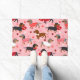Cute Valentine dachshund dogs with black, tan and dapple coats dressed in cute Valentine's Day outfits pattern with cupid's arrows and pawprints.