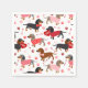 Cute Valentine dachshund dogs with black, tan and dapple coats dressed in cute Valentine's Day outfits pattern with cupid's arrows and pawprints.