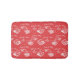 This rug is just as pictured! Vibrant Red and very soft material, nice to step in out of the tub! Matches my set of accessories and shower curtain! A must have to add some whimsy to your bathroom! Very nice, vibrant and clear print! Beautiful!