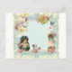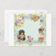 A collage of vintage and antique letters with pink roses, a young girl and a mailbox. Lots of ephemera with a Valentine theme. Lacy background in blue and yellow.