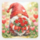 Valentine Gnome with Red Rose Bouquet Square Sticker