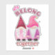 Bright pink, red and lilac Scandi gnome couple with “we belong together”.
